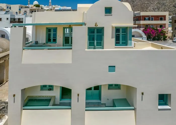 Con un jacuzzi, New Villa Katerina - 3 Villas & 3 Private Jacuzzi está situado en Emporio, a 3 km del Museo bodega Art Space. Está a un minuto de la Playa Roja y cerca de Castelli of Emporio.
